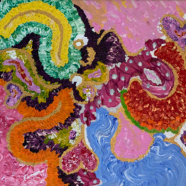 Whoop-De-Do a. Medium: Acrylid and Gemstones on Canvas b. Dimensions: 20” X 18” c. Description: Whoop-de-Do comes into being with open surrender and abandon, Source mystically merging artist, paint, energy, and possibility into a joyous noise. d. Original: $330 regular, Super Special $300