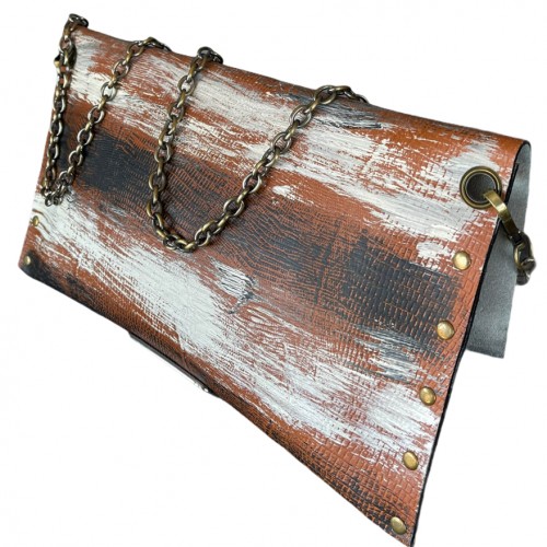 A classic large envelope, this stylish bag has an awesome tone of beige, black and brown, it comes with a detachable metal chain. A style that will remain elegant for years to come.
