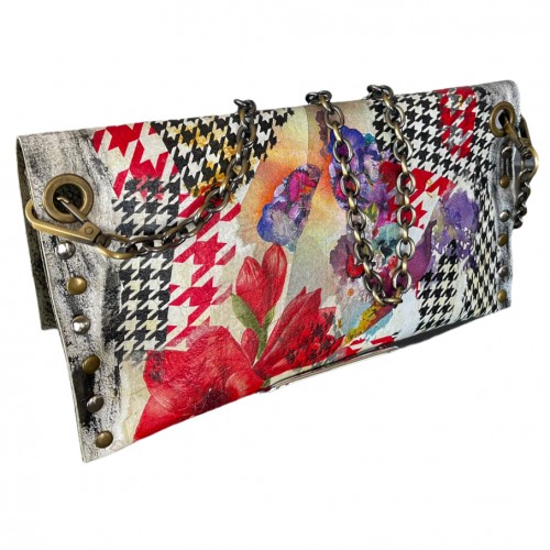 Unique envelope leather clutch purse hand-painted for special appearances. Leather clutch with abstract patterns designed with a parallel technique of painting and decoupage. Colors and patterns combine to create a swirl of images. It has an ideal size to accommodate your essentials.