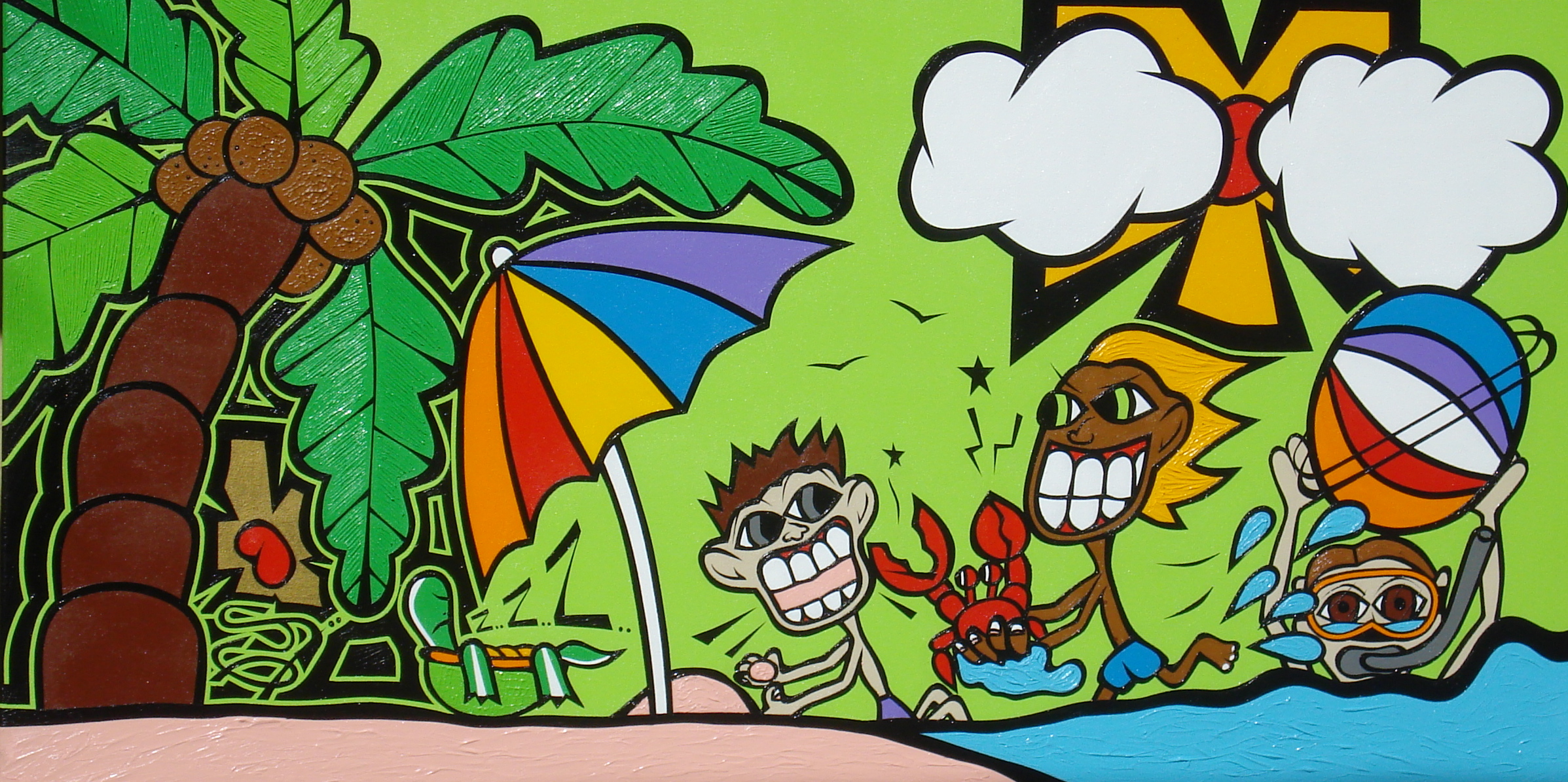 GusColors original acrylic on canvas. Another day at the beach is exactly what it's name suggests. A fun time under the sun and palm trees of Florida's beaches!