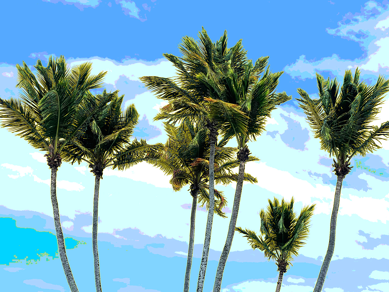 Plans in the breeze. Coconut Plans against a striking patterned sky. A classic Caribbean image.
