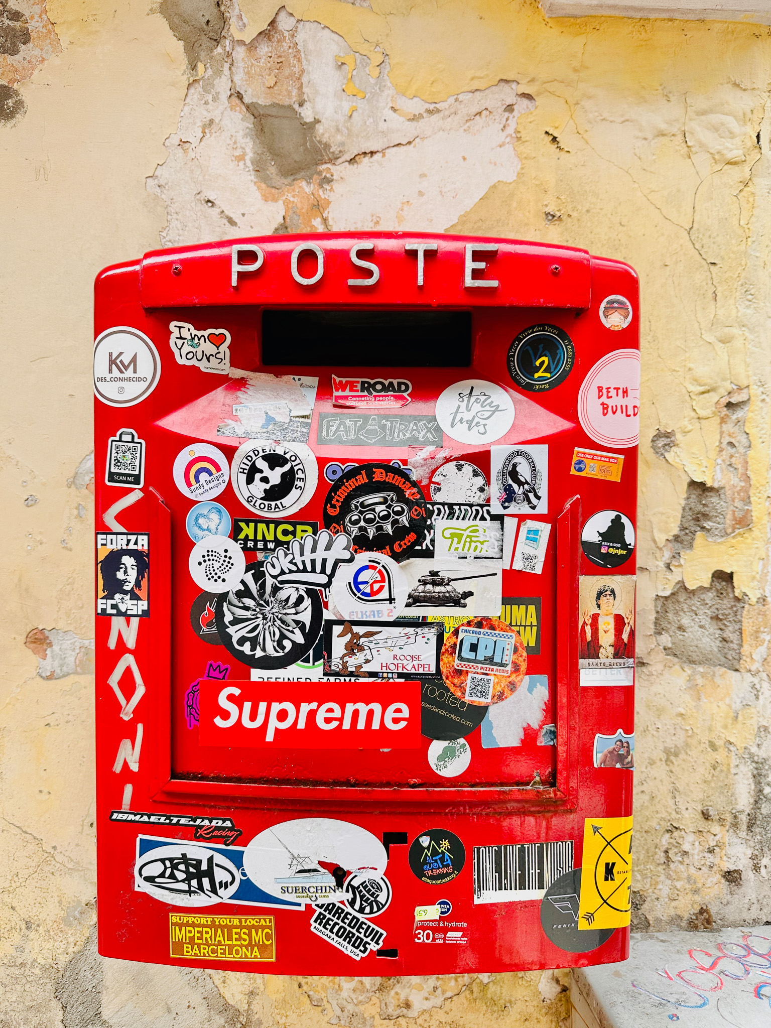 Vibrant image depicting today's artistic expression on a mailbox in Italy.