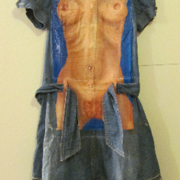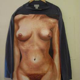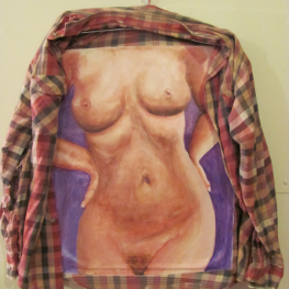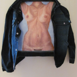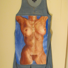 Steven Goldleaf has studied painting at Columbia University, and last exhibited his work at the Huntington Arts Council Gallery in September of 2018, where his painting “Body of Liza” was awarded Honorable Mention and has shown at the Turtle Press Gallery in the Woolworth Building in New York City in 2010 and 2011. He has had residencies at the Edward Albee Foundation’s William Flanagan Creative Persons' Center; the Woodstock Artists' Guild, the Virginia Center for the Creative Arts; and the MacDowell Colony, and his illustrations have appeared in DER FATALE GLAUBE AN DAS GLÜCK (The Fatal Believer in Luck ) by Rainer Moritz , Random House, Germany, 2012. In 2005, he curated a show at the Hofstra Museum of Art. “My series of oil paintings of nudes on clothing began around 2009 and continued through 2018,” he says. “I ended up painting well over a hundred of these, but this series began when in a museum, my younger daughter asked me what canvas was made out of. I told her, “Linen,” and she asked further “Like clothing? You could paint on a t-shirt?” A few years later, I decided to see if I could and I painted several landscapes, still lifes, portraits, before I hit on the idea of painting nudes roughly conforming to the part of the clothing I was painting on: torsos on jackets, legs on skirts, and so forth. This project became more challenging as I painted more and more ambitious paintings, and I would say the final three or four dozen works (most of which are on this website) are very satisfying.”