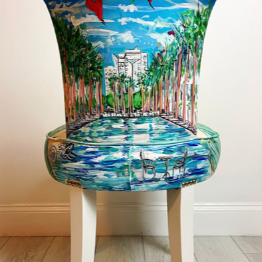 ARTIST STATEMENT Art, Both liberating and rehabilitating-is for me, the most effective means of self-expression. The notion of achieving harmony with not only oneself, but also with the outside world, is the foundation of my work. Its inevitable that people will experience hardships and hurdles as they go through life; however the way you deal with and overcome those obstacles is what truly defines you as a person. Losing my father to cancer at a young age as well as traveling and meeting new people throughout the world has profoundly influenced me. I have learned that there are positive and negative energies in the universe. My heart has been broken, and spirits/emotions have been through highs and lows, but I have focused on being a positive person and the impact has been amazing. Experiences and people can really open your eyes if you let them. My overwhelming optimism has truly helped shape the person I am today. Art is what makes me feel free in my own head and the way to express personal serenity. Bright, bold colors are often used to express the positive energy I try to obtain. As my Art has matured, I’ve learned that sometimes more subdued colors can also be very peaceful. I consider myself fortunate having a passion for both painting on canvas and hand dying silk because they both allow me to express myself in different ways. Making something for the body allows me to work more freely by dying fabric and creatively sewing pieces together. Painting through replicating photographs of faces, animals, and scenes requires painstaking focus, while still contributing my own artistic flare, is also very tranquil for me. Lately, I have combined my two passions and found a third, painting on denim and leather jackets. This third medium of wearable art using a paintbrush, denim, and leather to create colorful detail, has been exhilarating. Regardless of what I am creating, it all has the same outcome, expressing the positive energy I feel in my soul.